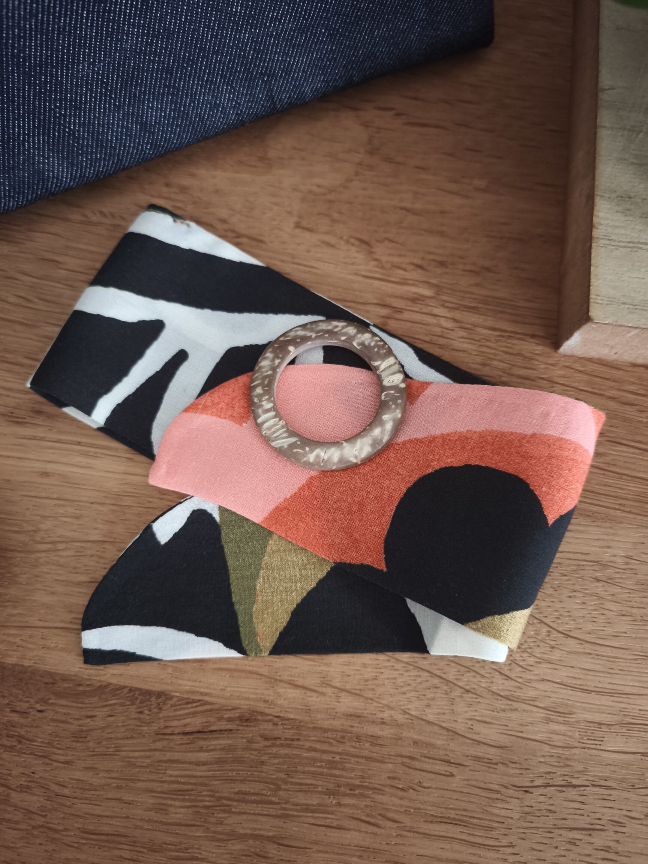 Mini foulard au choix avec son anneau coco, à nouer sur le poignet, sur un sac ou sur un passant de pantalon pour personnaliser chaque look