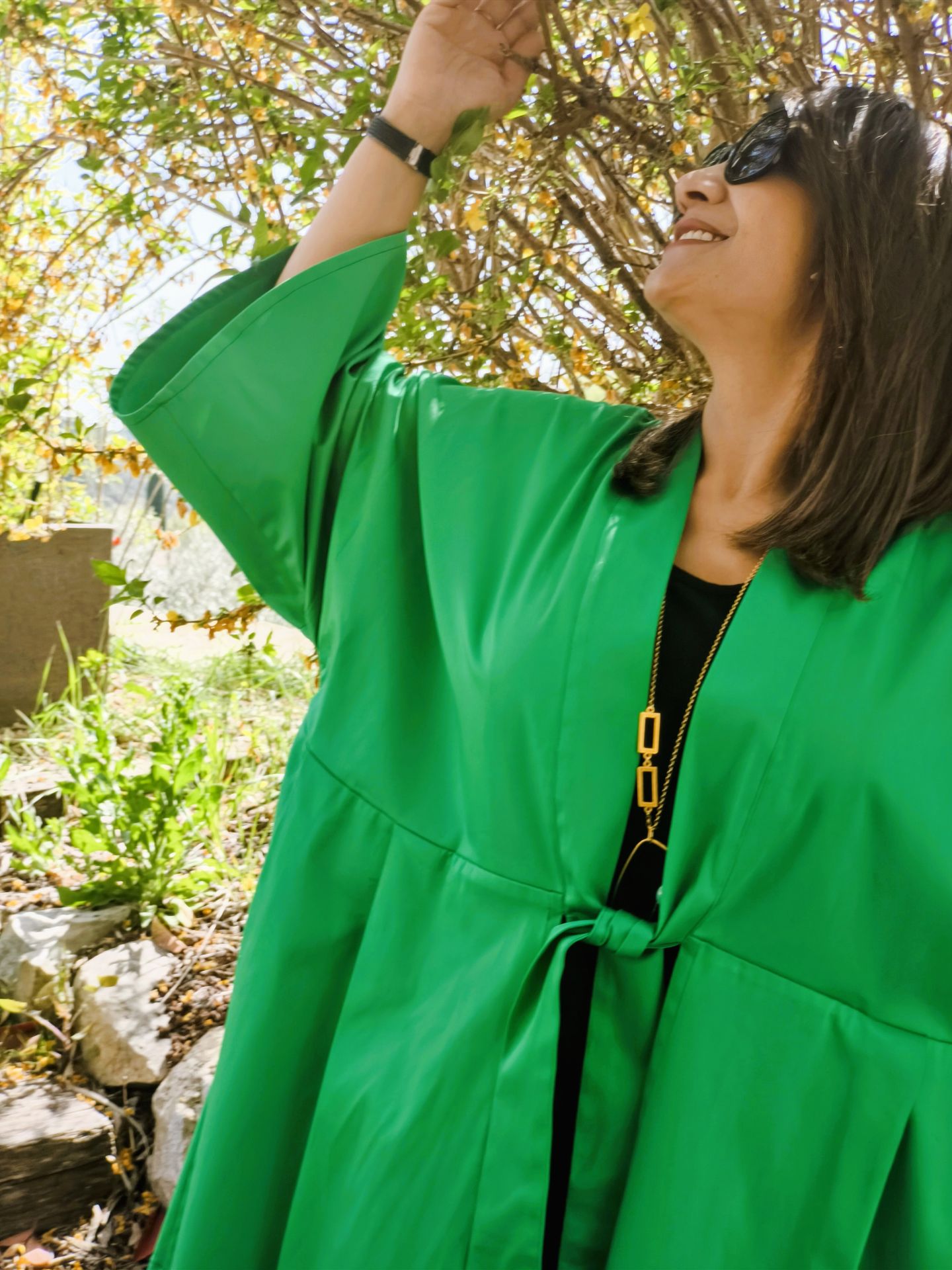 Ce kimono tunique structure la silhouette avec caractère, sans jamais la figer.