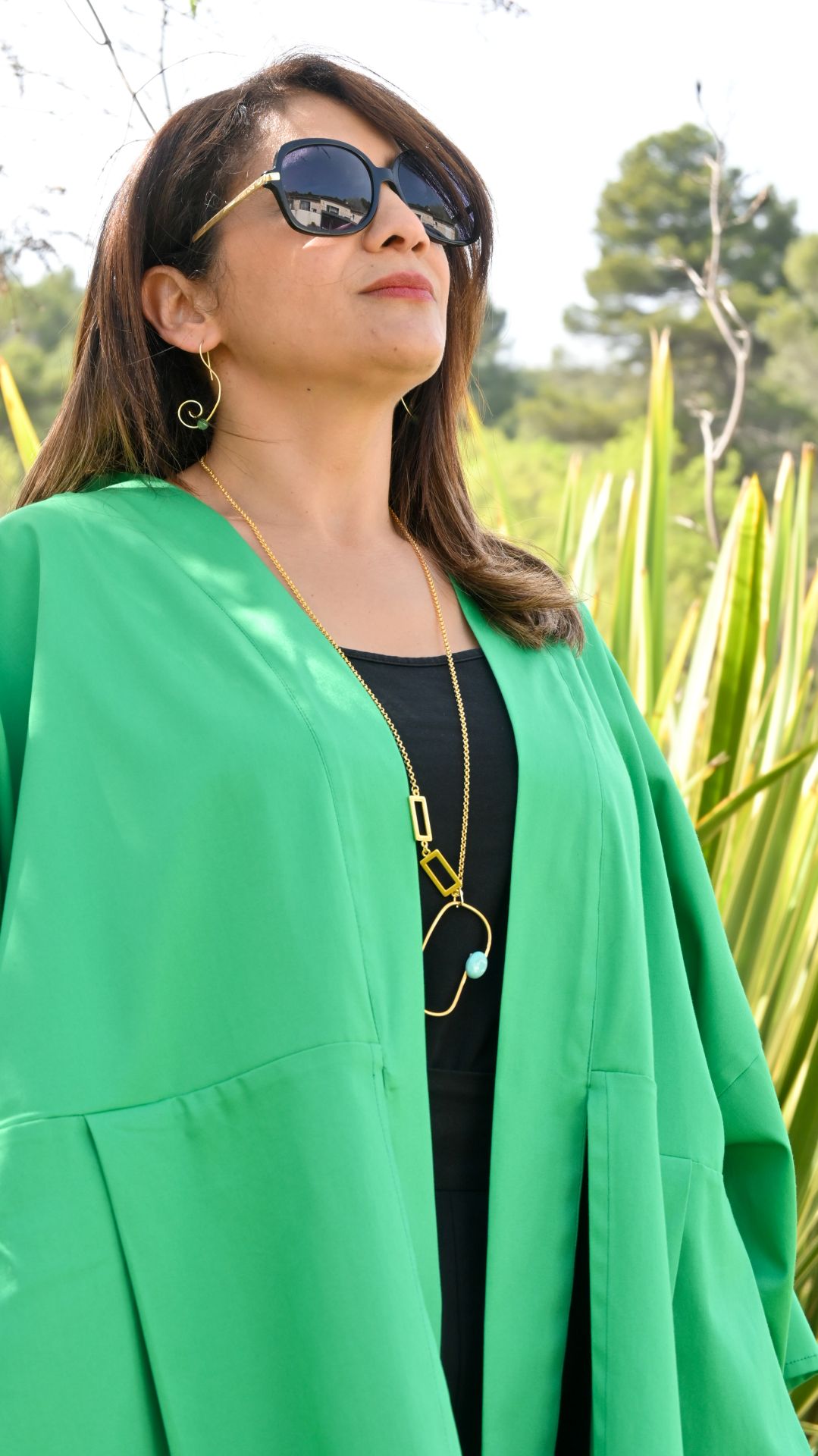 Un vert qui capte la lumière. Une coupe qui donne de la présence.